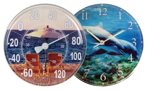 | Hydro Tools 9260 Poolside Wall Clock and Thermometer Combo Set |
